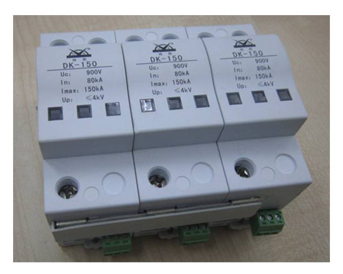 專門為風力發電系統設計,滿足風機輸出690V電壓的要求;通流量最大可達到160kA,屬B級電源防雷器 ;模塊化設計,安裝簡單方便;采用溫控斷路技術,并內置過流保護電路,具有自動脫離功能及分段劣化指示,維護方便;具體型號: DK-690AC150、 DK-690AC80、 DK-690AC40